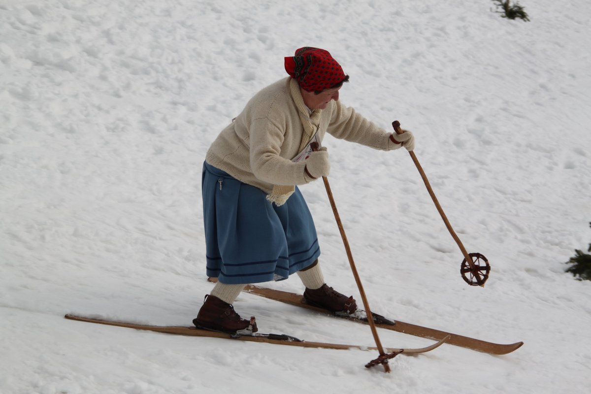 Tudi nežnejši spol obvlada tehniko smučanja po starem
